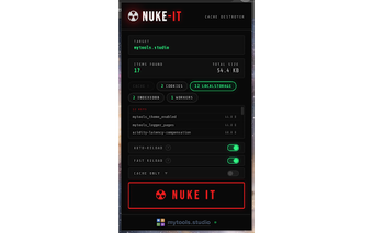 Nuke-It ist ein kostenloses Chrome-Add-on, das speziell für Webentwickler entwickelt wurde, um die Cache-Verwaltung zu optimieren. Mit dieser Erweiterung können Entwickler schnell und einfach den Cache einer Website leeren, ohne auf unübersichtliche Prozesse angewiesen zu sein. Die Funktionalitäten umfassen eine detaillierte Übersicht über alle gespeicherten Daten, darunter Cache-Einträge, Cookies und lokale Speicherschlüssel, sowie eine benutzerfreundliche Möglichkeit, diese Daten zu löschen. Der große rote Knopf ermöglicht es, alle Daten mit nur einem Klick zu entfernen und sorgt so für einen effizienten Arbeitsablauf.